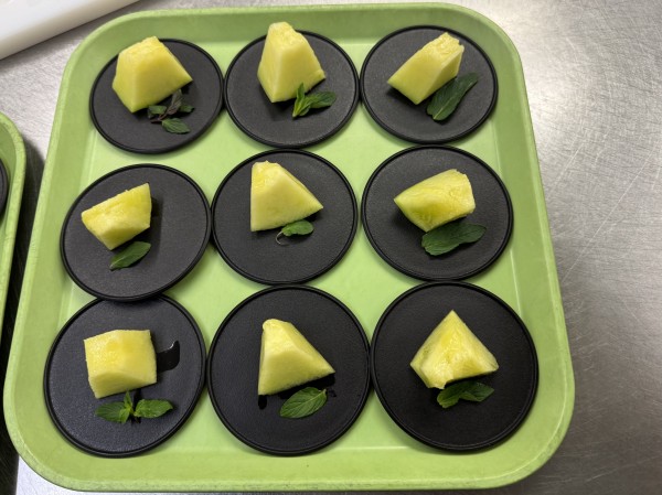 お口直しの乙女メロン。ミントの葉っぱを添えてます。甘くておいしいー♪