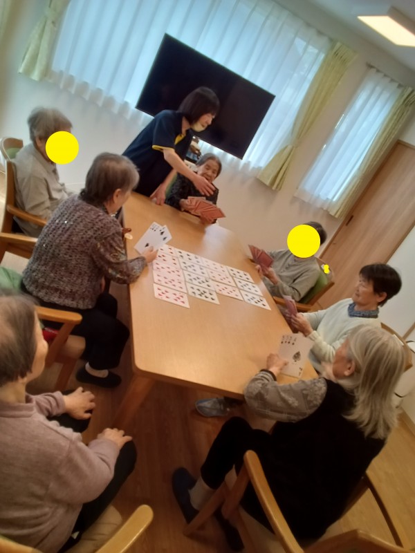 職員のNさんがみんなをサポートしています!忙しいけど真剣勝負なのでしっかり戦略を考えながらトランプと向き合っています☺真剣