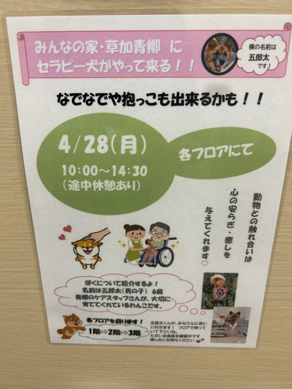 今月28日に、ドッグセラピーがあります!