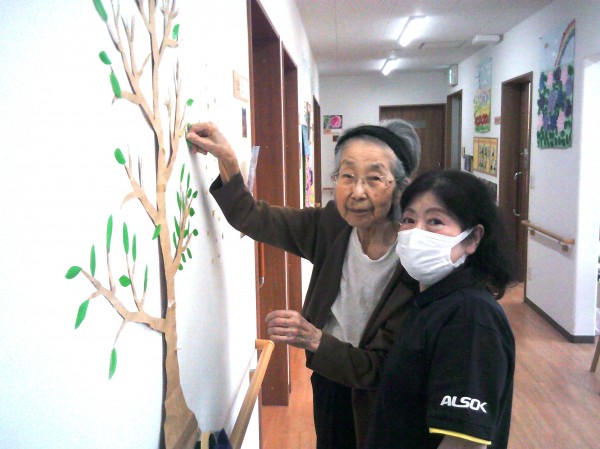 桜の花が散り新緑が出てきましたので葉っぱの貼り絵を行っています。そのご様子をお知らせいたします。
