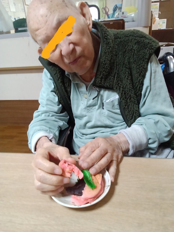 みんなで、生地を混ぜたり、小豆を丸めたり・・