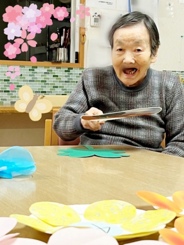 A様とM様が職員と一緒にお花の得点皿を作成してくださいました♪