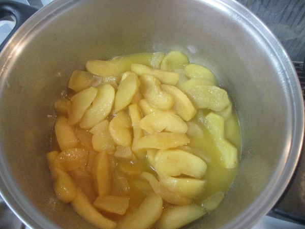 林檎5個に、バター、ハチミツ、シナモンシュガー、レモン汁を入れてグツグツに煮ます。