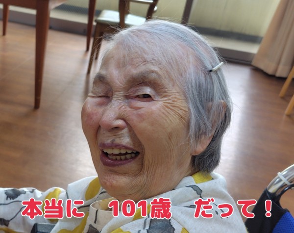 「今まで、みんなに100歳だ100歳だって言われてて、まだまだそんな年じゃないと思っていたけれど。どうやら、私は本当に今日で101歳のようだね!アッハッハッハ!!」