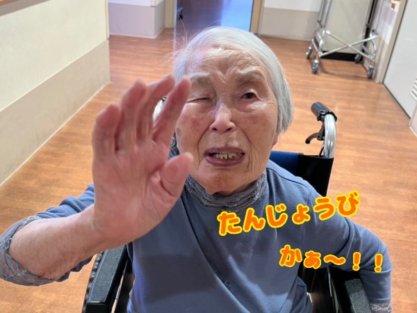 「お誕生日おめでとうございます!」「素敵なシャツがお似合いですよ!101歳おめでとうございます!」