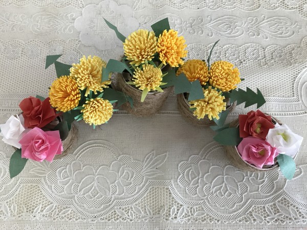 その他にも、紙テープと画用紙で作った【タンポポ】や【バラ】を飾っています!!