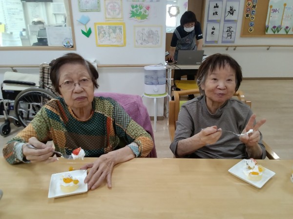 美味しいケーキをみんなで食べて元気満タンですね!
