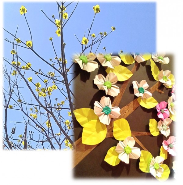 白とピンクの花水木を作り、皆様の目を楽しませてくれています