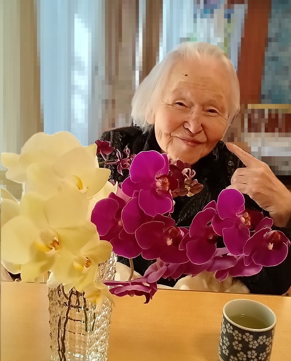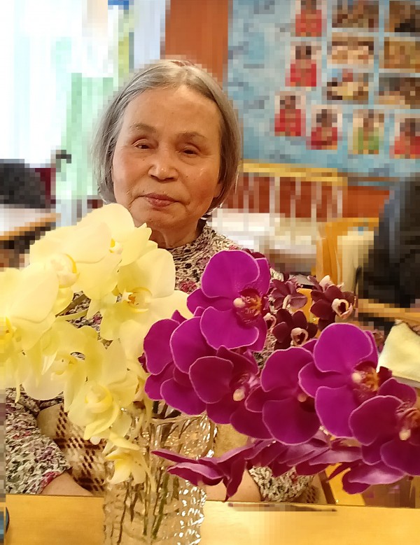 先日ホーム長が 食堂フロアに蘭の花を飾ってくださり