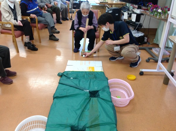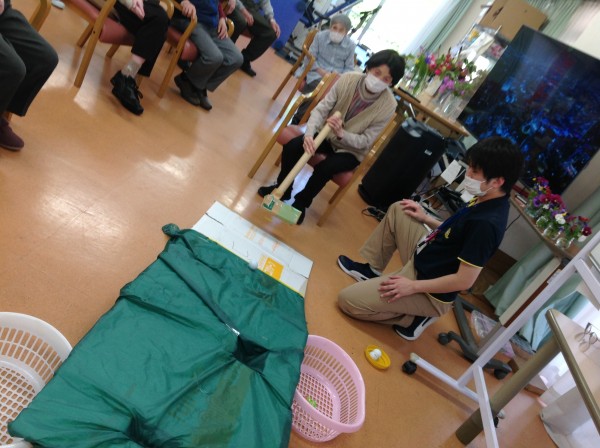 折笠センター長自作のパターゴルフ会場です。上り坂があり、穴に落として点を取ります!なかなか難しかったですが、皆様最後まで楽しまれていました♪