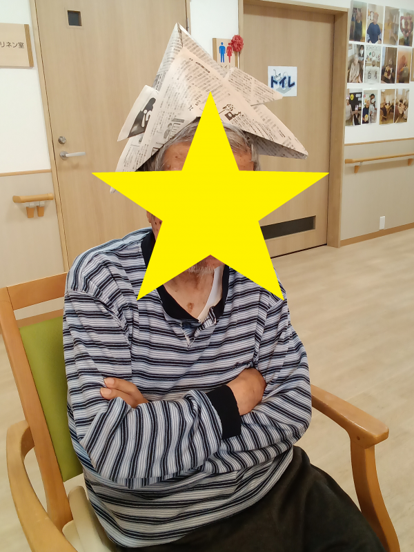 新聞紙で兜を作り写真を撮りました(*^^*)