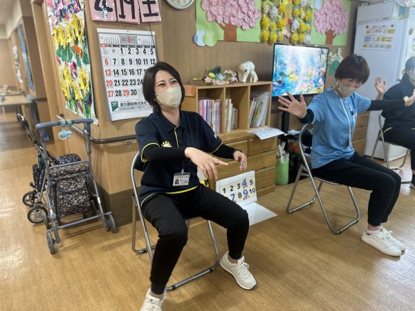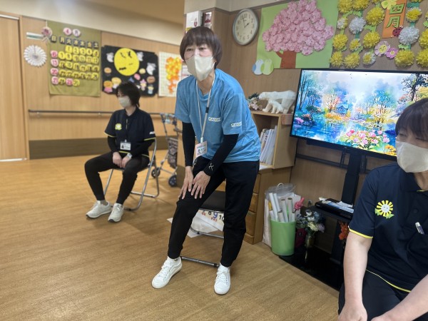 加藤トレーナーと一緒にホーム長も前で体操をしました!