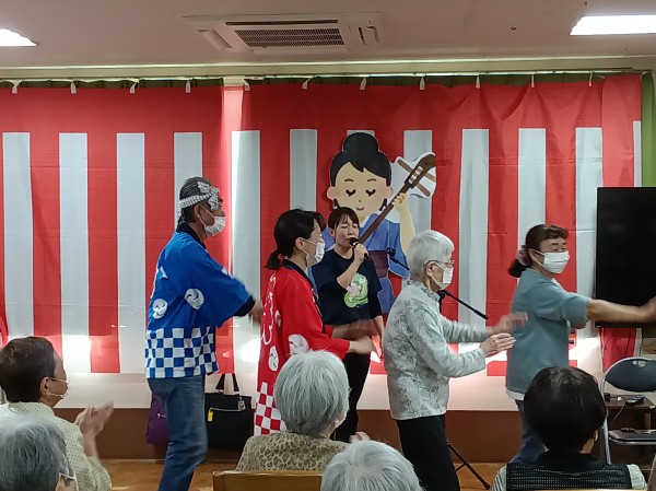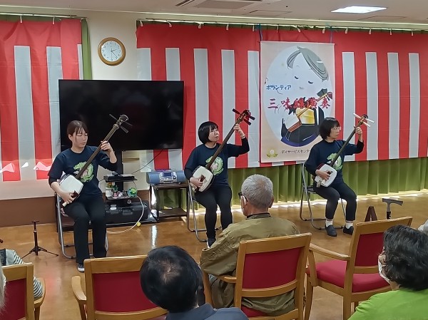 こちら、遊・東浦和では職員の紹介のボランティアグループ「梅龍会」さんが来て下さり大迫力の三味線演奏がありました!