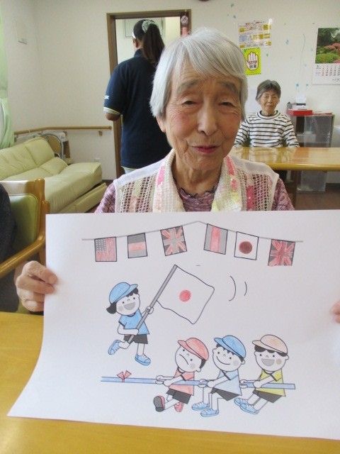塗り絵や貼り絵を行っています( ^ω^)・・・ 綺麗に出来上がりましたね!! ニコニコされて嬉しそうです(^0_0^)