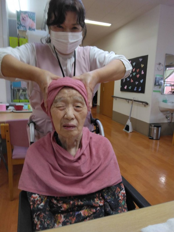 お顔や足などをマッサージされて皆さま気持ちよさそうでした。