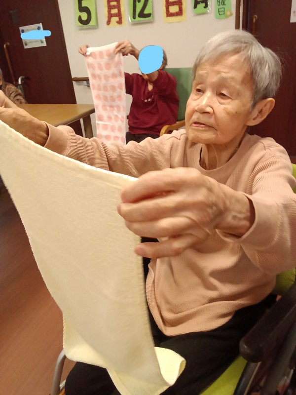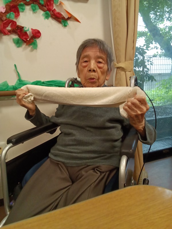今回はタオルを使った体操でしたが、慣れない体操にも関わらず入居者様は一生懸命に参加していただき感謝の気持ちでいっぱいです