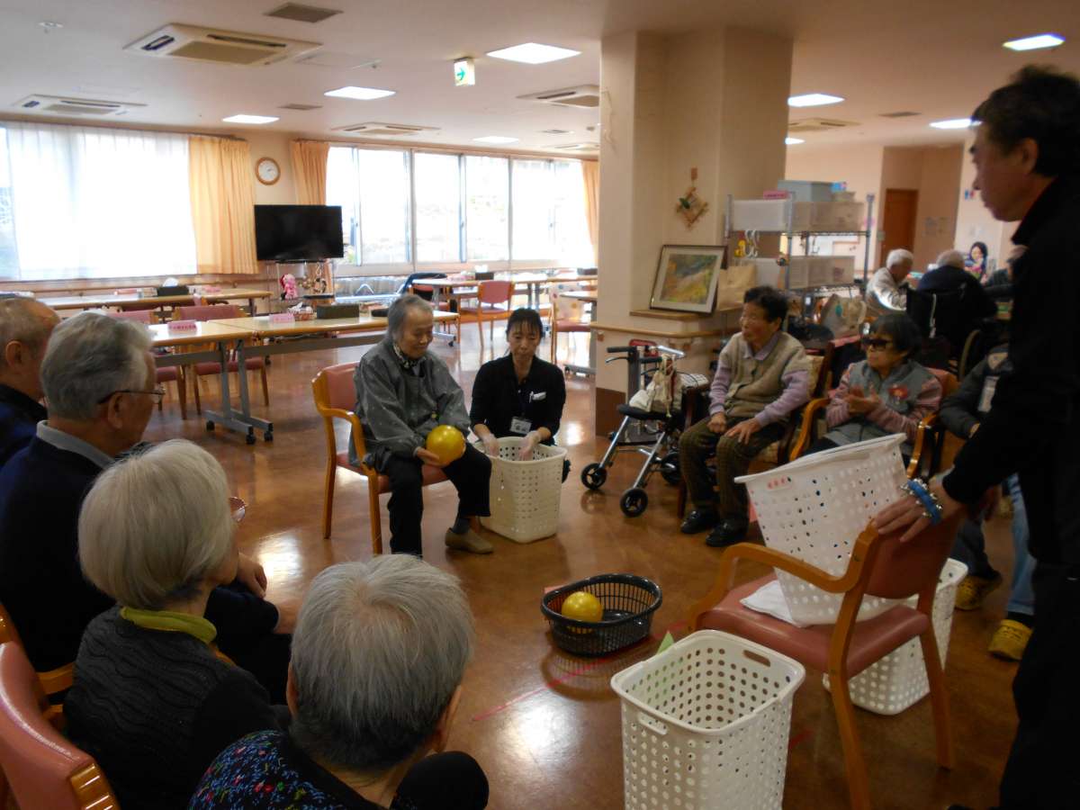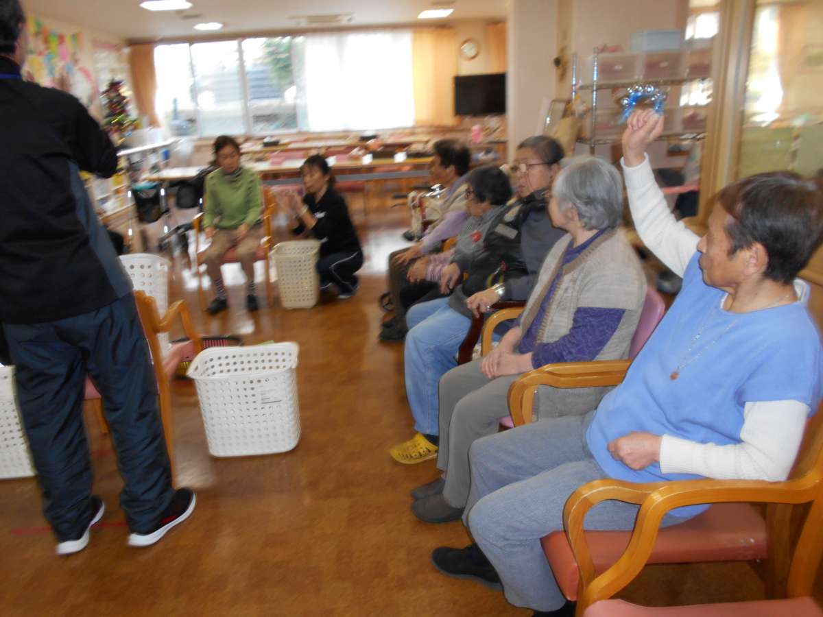 本日のレクはバスケットボールの日