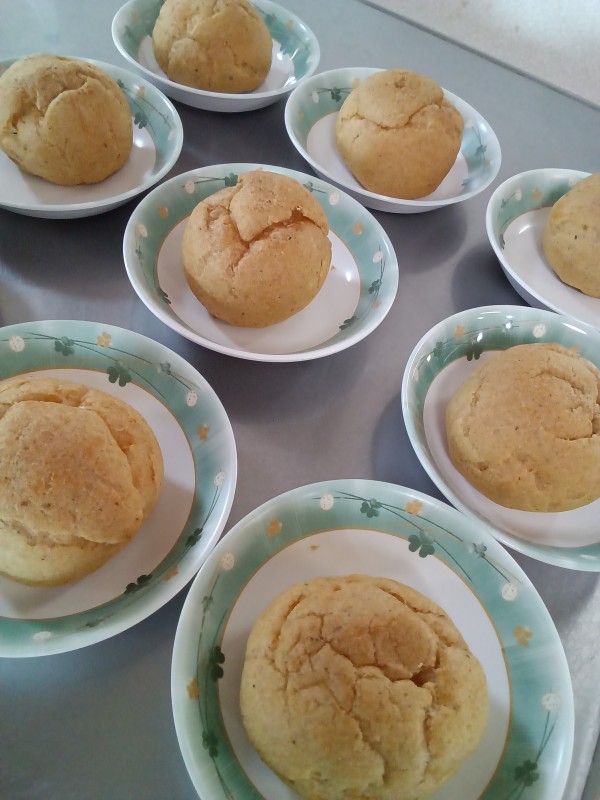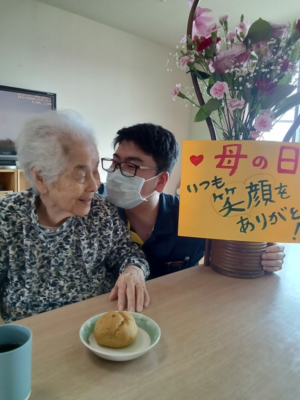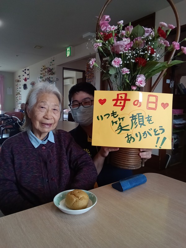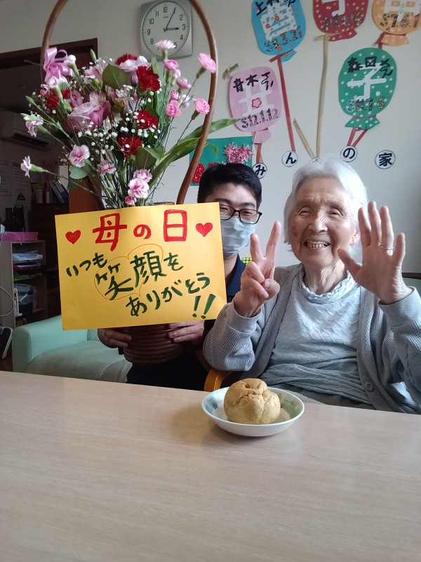母の日ということで、お花とシュークリームと一緒に記念撮影をしました♪