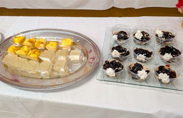 抹茶あずきムース、コーヒーゼリー、カスタードプリン、桃ジュレ
