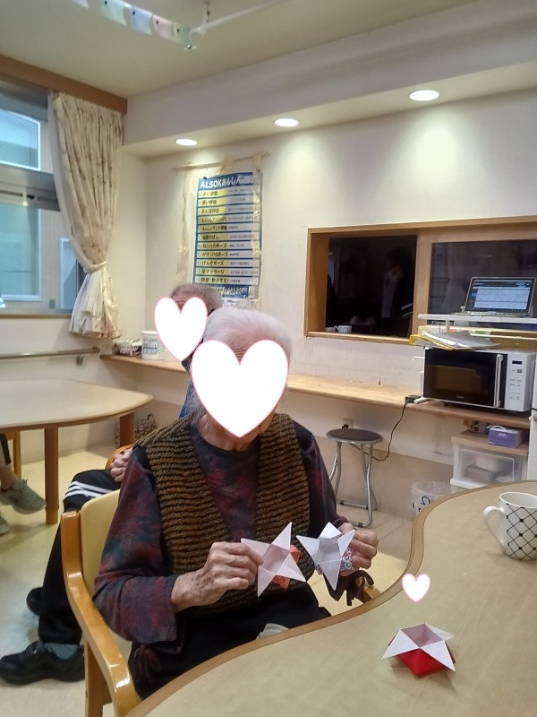 おやつ入れを「どうしようか?」と考えた末にご利用者様と折り紙で