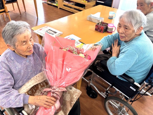 そして南中丸のご利用者様や職員にも花束のプレゼントをご用意していただき、ご家族様には心から感謝いたします