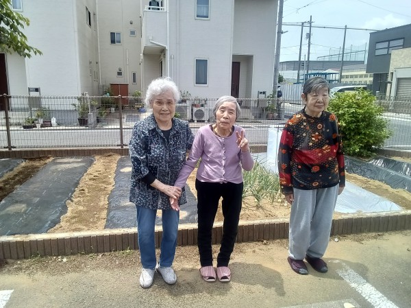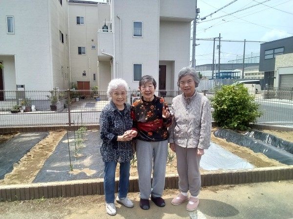 食後には、菜園の様子を見ながら記念撮影です。