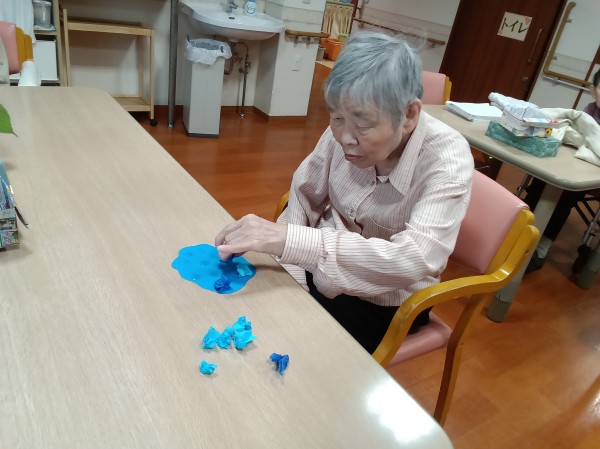 材料を準備し、利用者様にお願いすると、「何ができるの?」などと興味深々の方もいらっしゃり、着々と進行しています。