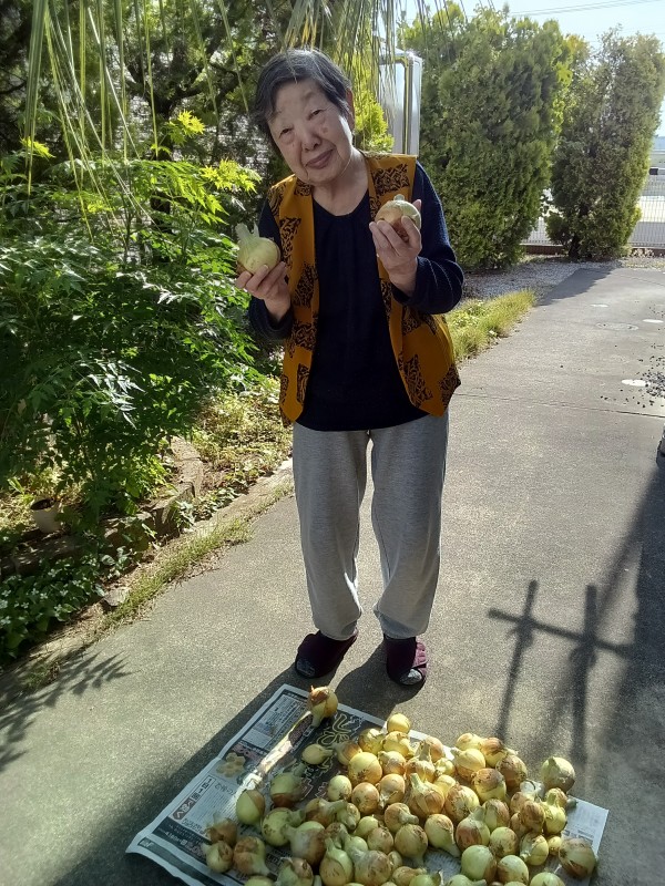 玉ねぎがたくさんとれたのでご利用者様にも見ていただきました。