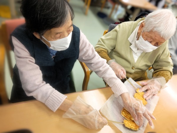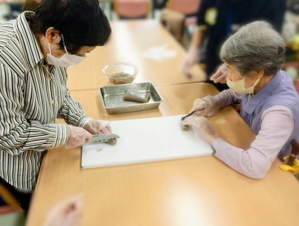 職員もご利用者様も?を浮かべつつ出来るだけ崩れないよう慎重に切りました。