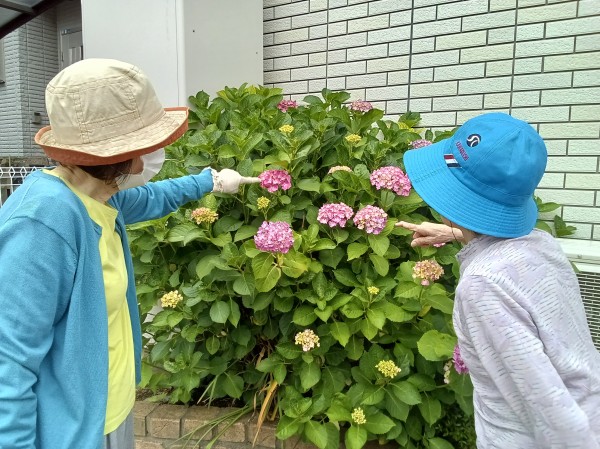 初めて見る種類の紫陽花にも「珍しい、初めて見たわね」と喜ばれていました (^0^)