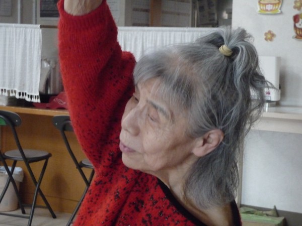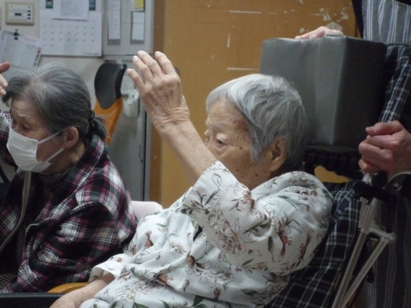 大きく腕を上げ伸ばしたり