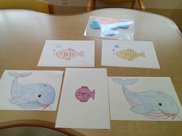 皆さんとても丁寧な仕上がりで、カラフルな魚が出来ました。