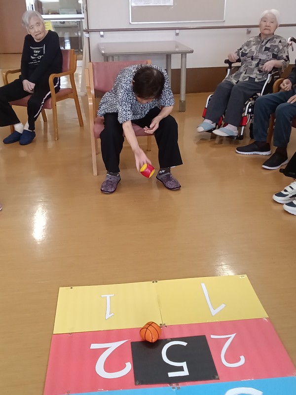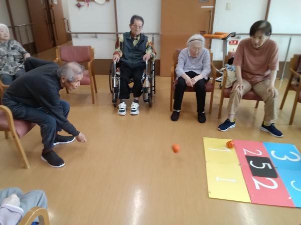 3球ボールを投げ、止まったところの得点が高い方が勝ちです。