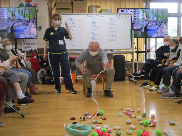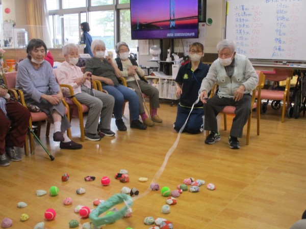 「思ったより難しいわね~」「あと少しだったのに!」といった声が飛び交い、取れた時には大きな拍手と歓声が上がるなど、大盛り上がりのひとときとなりました。腕の動きや集中力も必要な、楽しい脳トレレクでした♪