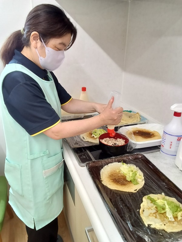 朝から利用者様に生地を混ぜていただき、職員皆でクレープ生地を焼きました♪