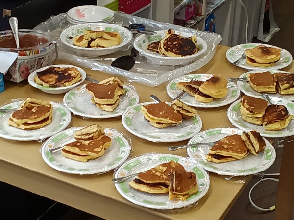 ホットケーキの焼けるあま~い香りのする中、お茶と一緒にいただきました。
