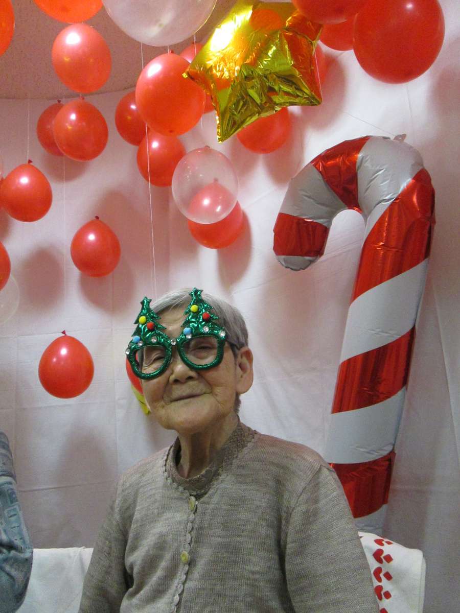 一階のグループホームの若手ホープのK職員が作成してくださった。インスタ映えする 写真スポットで撮影させていただきました。