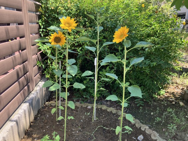 そんな暑さの中、アミカの郷川口正面玄関脇には、ひまわりが凛々しい姿を見せています。