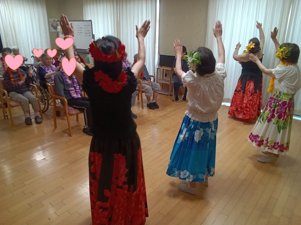 一緒にフラダンス踊って盛り上がりました