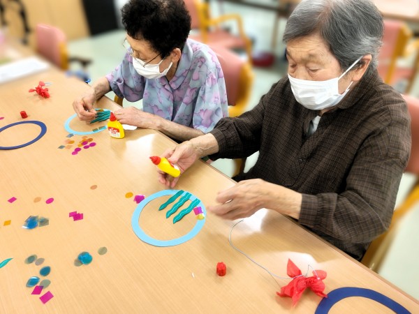 金魚モビール飾り作りをしていただきました!