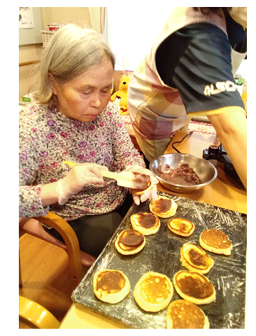 焼かれたパンケーキに あんこを塗ってくださる S様♪ヽ(〃v〃)ノおいしそう