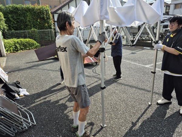ですので数日前に、室内で開催予定に変更として、テントは1張り町内会からお借りしました。