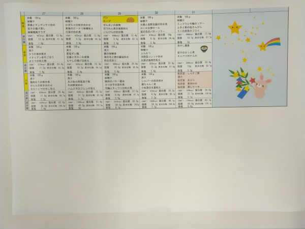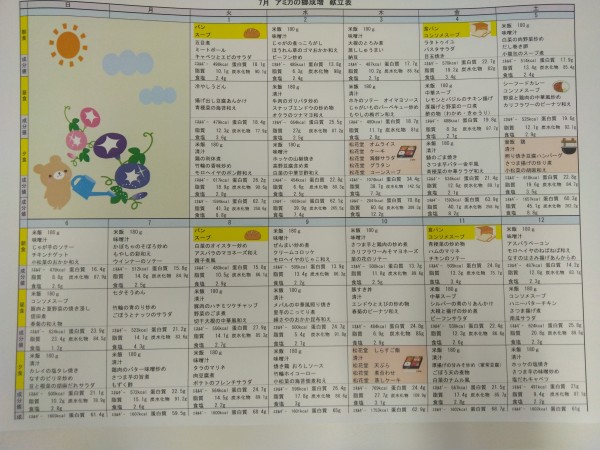 7月のメニュー表になります。