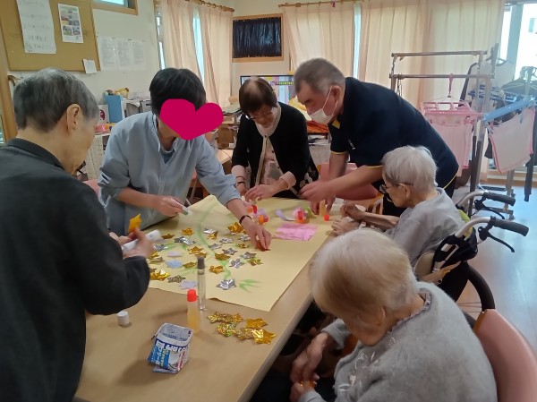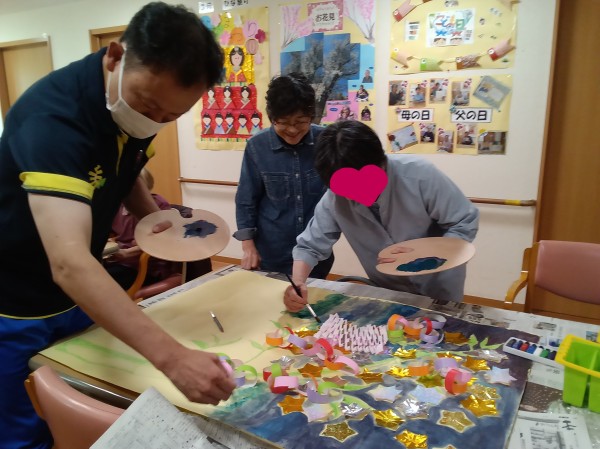 レイアウトから飾り付け、色塗りまでケアスタッフと共作しました。