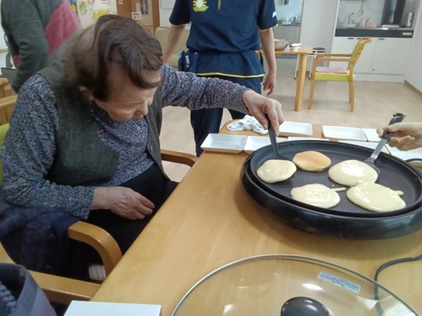 別のご入居者様は、生地を焼く係☺