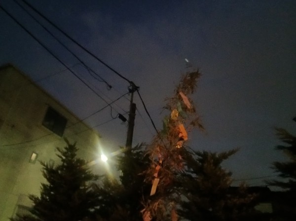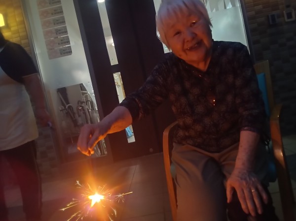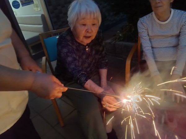 七夕の笹を前に玄関先で、花火大会をしました☆