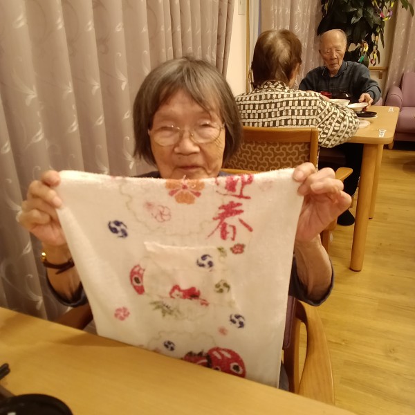 利用者様がはさみ貸してくださいと事務所に来られ事情聞くと、『このタオルが破けちゃっていいところだけ切りたいの』と