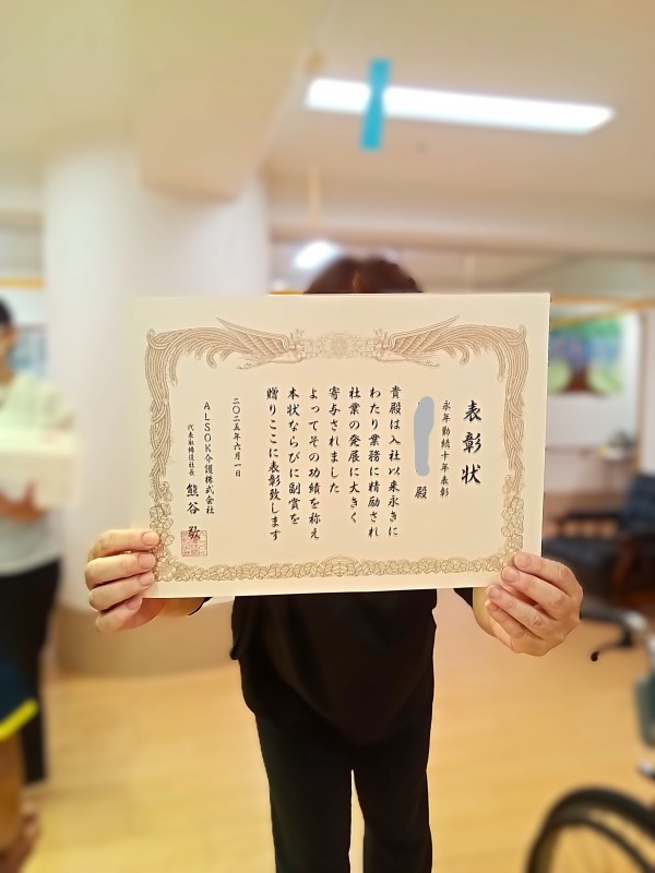 ★☆永年勤続表彰式・勤続10年表彰滑川本部長より贈呈2025年令和7年✨ 『みんなの家 三橋6丁目 介護ブログ』☆★
