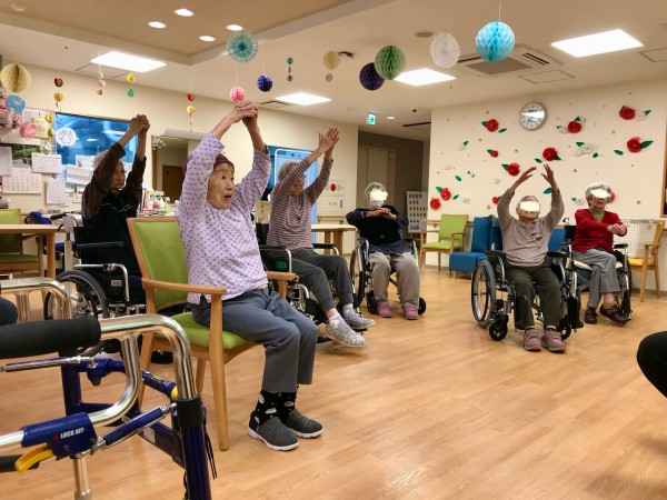 皆さん食堂に集まり30分〜40分体操に参加されます。
