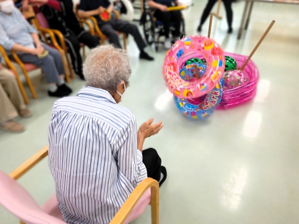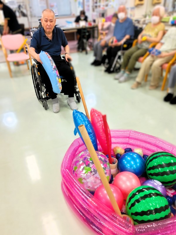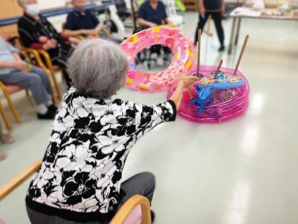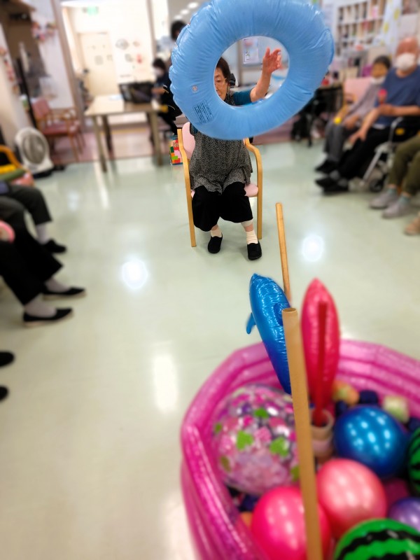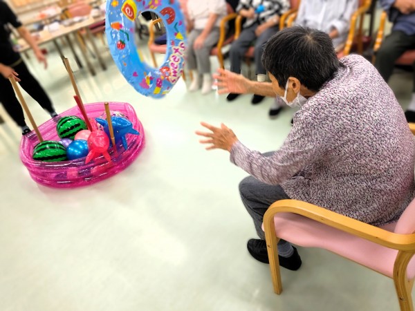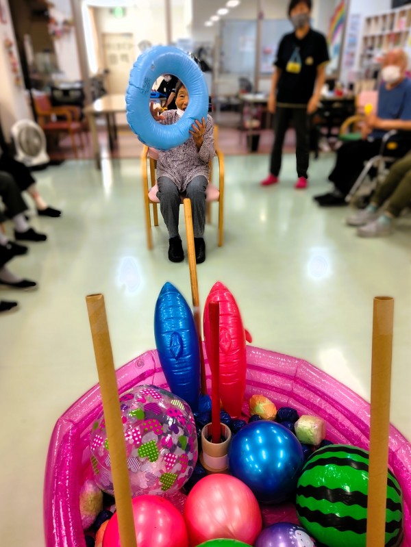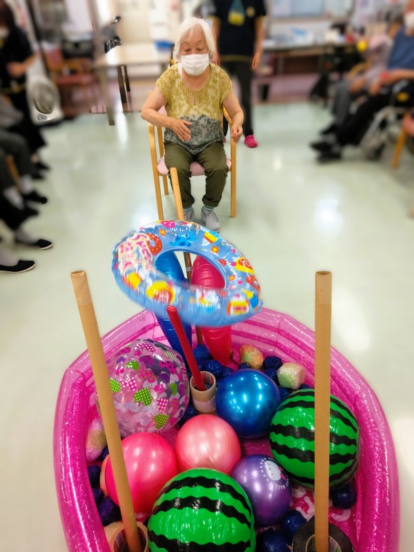 輪投げの要領で、できるだけ高得点を狙って浮き輪を投げていただきました!